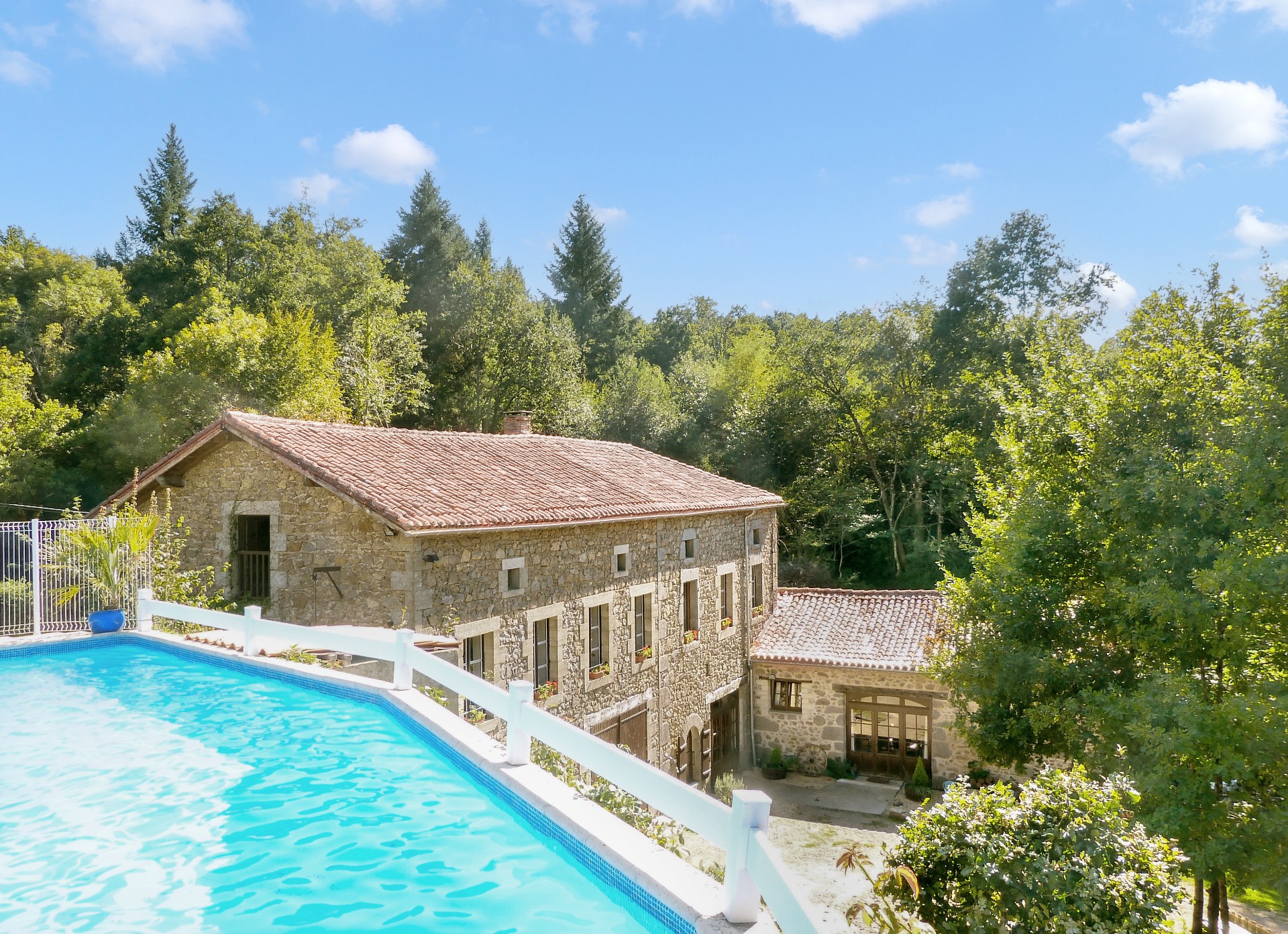 On the edge of private woodland and meadows with a newly renovated swimming pool, gentle waterfall and shallow river, this converted watermill is the perfect place to unwind. You will enjoy the serenity of the location which is also a haven for wildlife, whilst the children can try to catch the crayfish or play with the many activités we have provided such as a zip wire, table tennis and badminton. Finish your day with a dip in your private hot tub and a barbecue with some excellent local produce.