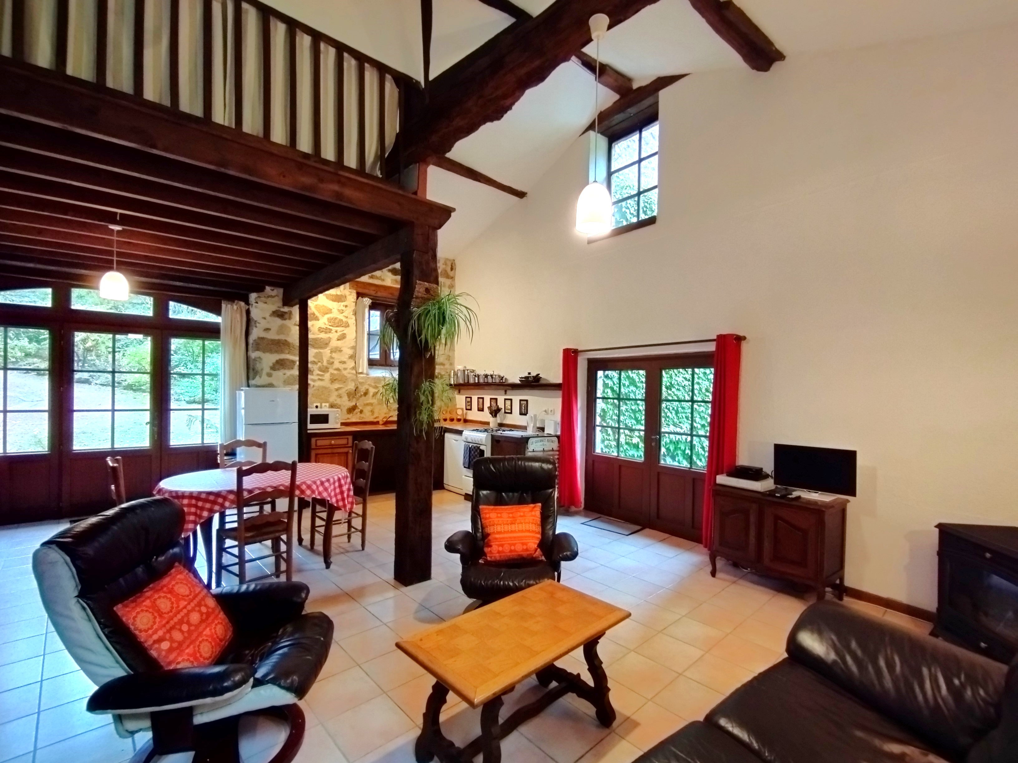 La Rive, with its riverside location and views of the woods and meadows, has been tastefully renovated with exposed beams and original stonework giving you a real sense of history whilst feeling comfortable and modern. It has a furnished private terrace with BBQ on the sunniest side of the building that overlooks the river and woodland.